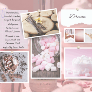 Dripping in decadence, Dream is a playful gourmand dream that feels like dessert at golden hour. It opens with a swirl of melted chocolate, fluffy marshmallow, and a zing of candied ginger, balanced by a sparkle of bergamot. At its heart, velvety coconut milk and rich vanilla dance with jasmine, creating a creamy, addictive warmth. Finished with whipped cream, soft sugar, and a hint of cashmere wood, this scent is cozy, flirty, and impossible to resist, and you’re good enough to eat.